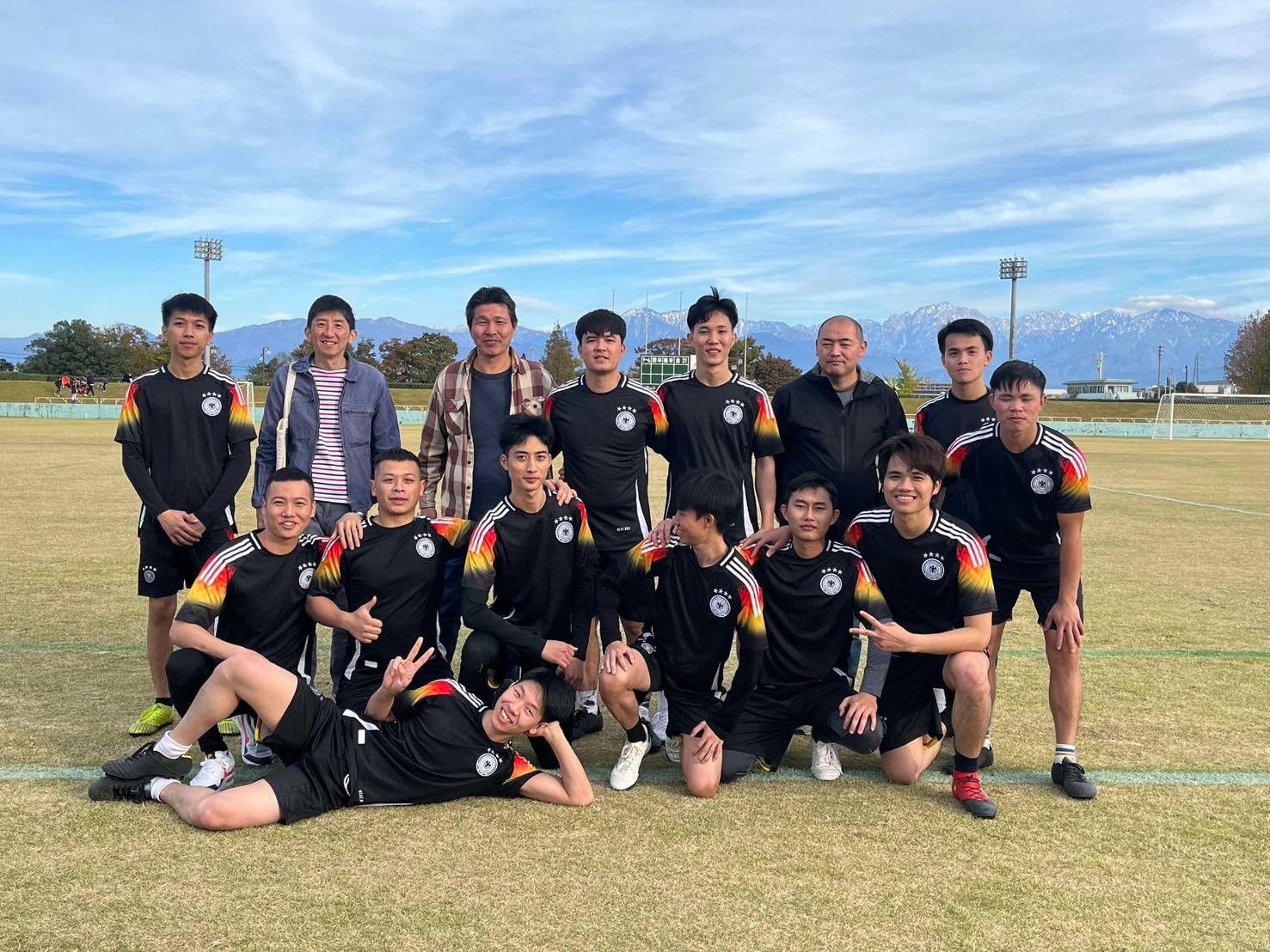 日南田 恵子 | 富 山 | サッカー交流会 | ベトナム人技能実習生&組合通訳とで、日本人サッカークラブとのサッカー交流会に参加しました。サッカーシューズを持っていなかった人には、会社が買ってくれました。ユニホームは自分たちで作成しました。日本人のチームの方に、練習方法も教えてもらいました。試合もしました。久しぶりに本格的なサッカーをすることができてとても楽しかったです。ありがとうございました。 |